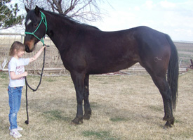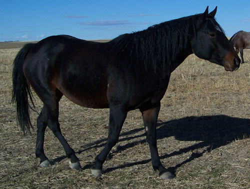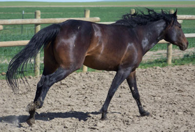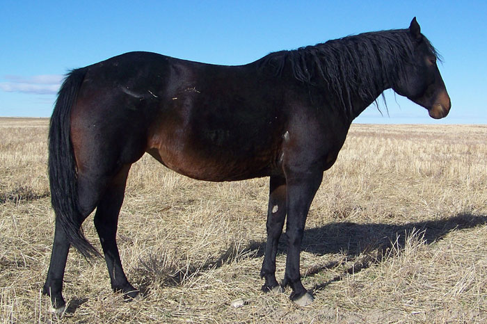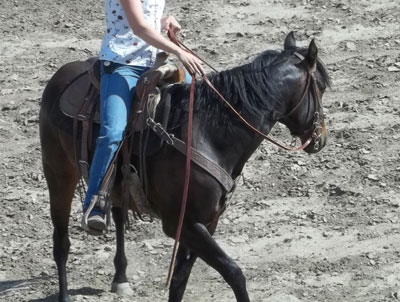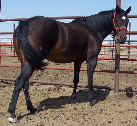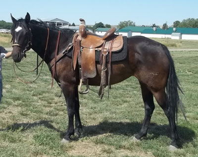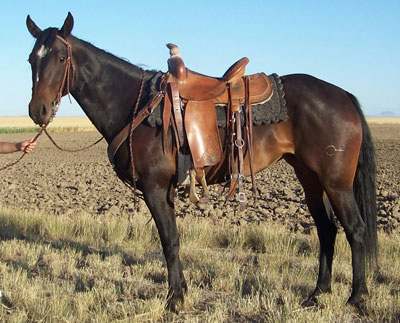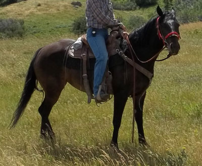 Dew Drop stands approx 14.2hh and weight around 1100#. She is broke to ride. Dew is respective to her handler and tries to please you, she is very quick and catty. She has a great mix of speed and foundation blood in her pedigree making her a good fit for many breeding programs or with her athletic ability she would make a great performance horse. She has moved cows, had the stock whip used off of her and been on a 3 day wagon train!