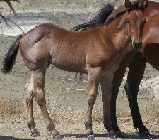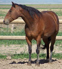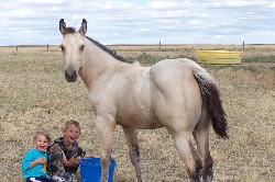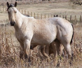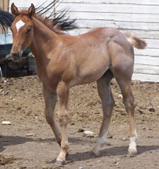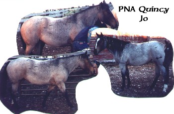 The first photo was taken at about 1 month of age. The second photo was taken in October of 2002. The third was taken in January of 2004. Quincy was bred to Nu Bars Million for this beautiful 2005 foal. PNA Quincy Jo is now being used as a ranch horse, and has quickly become a favorite of her owners. She is out of NLD Jo Fly Hancock and Miss Quincy Myers.