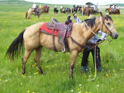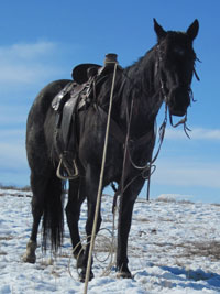 "Rose" is pictured on October 21, 2004 when she was delivered to Valier. Then again on November 12, 2007 at their home at Diamond D Angus of Valier. She quickly earned her way as a great ranch horse and became a favorite saddle horse when the work needs to get done.