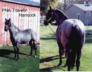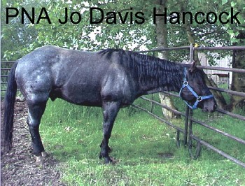 The first photo was taken in Aug of 2000. The second photo was taken after a hip injury in the summer of 2003, sadly, PNA Jo Davis Hancock had to be put down because of this injury. He will be greatly missed. He was out of NLD Jo Fly Hancock and NLD Lilly Hancock.