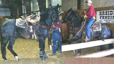The first photo was taken on Sept. 13, 2001. The second photo was taken on January 12, 2003. PNA Travelin Hancock is now standing in IN. and has started roping. The roping photos are from Jan. 2005. 2010 UPDATE- Traveler has been sold and is now located in Canada & still looking good!